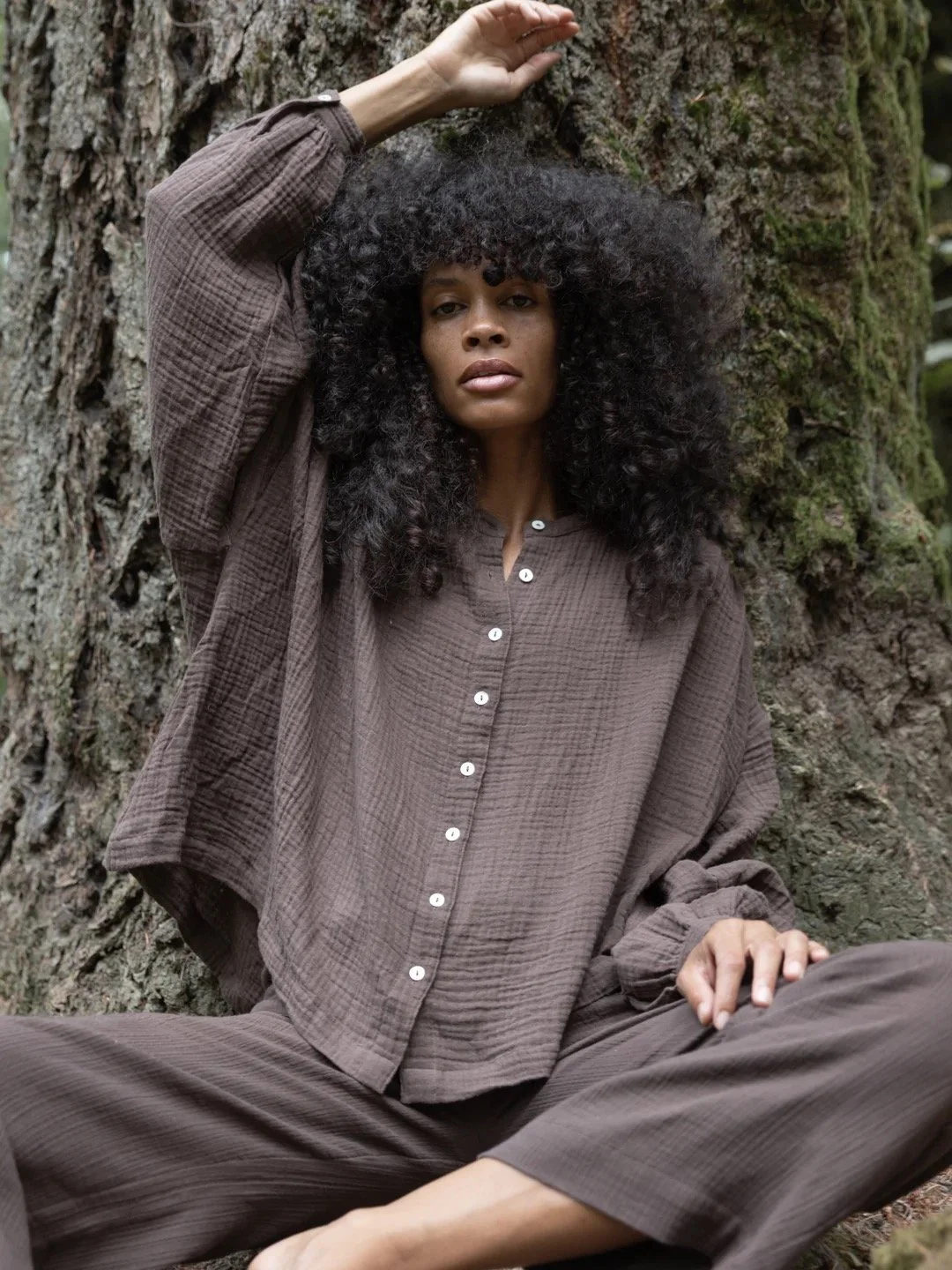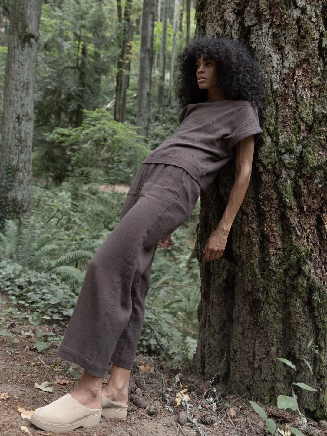 The second delivery of AW22 is meant to keep you warm. Knitwear sets, winter accessories, and organic cotton layers rounds the cozy collection. The palette is tight with mushroom hues and forest inspired ditsy florals. The pieces are designed for layering, with a mix of fitted and relaxed silhouettes as well as longline proportions. A range of textural knits offer warmth as the days get colder.